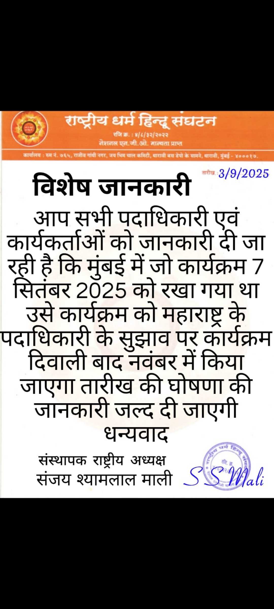 सभी सदस्यों की सूचित किया जाता है कार्यकर्ता मिलन समारोह के बारे में जानकारी